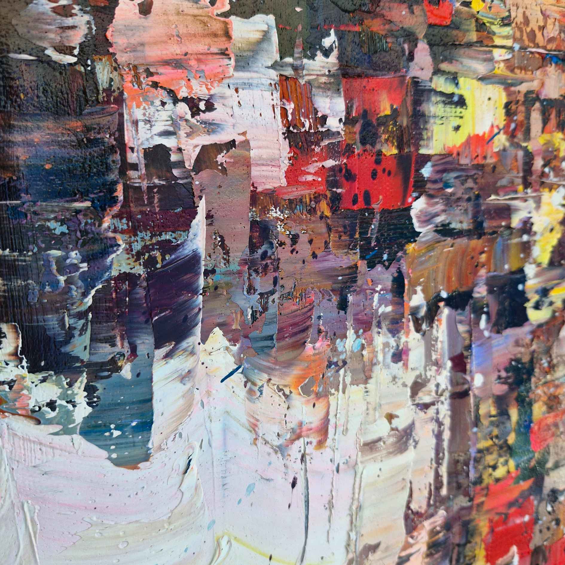 - Spürbare und sichtbare Textur durch die aufgetragenen Farbschichten.
