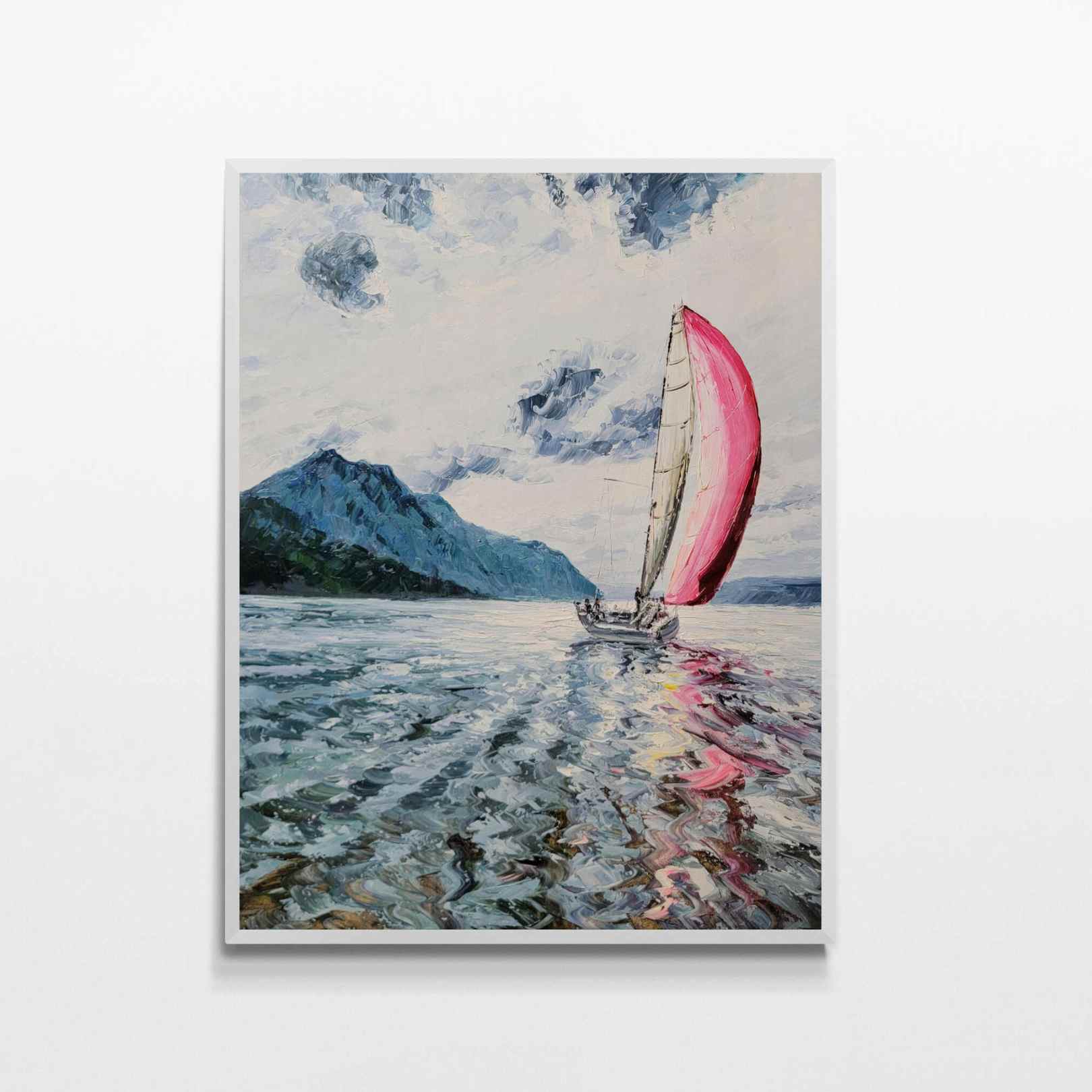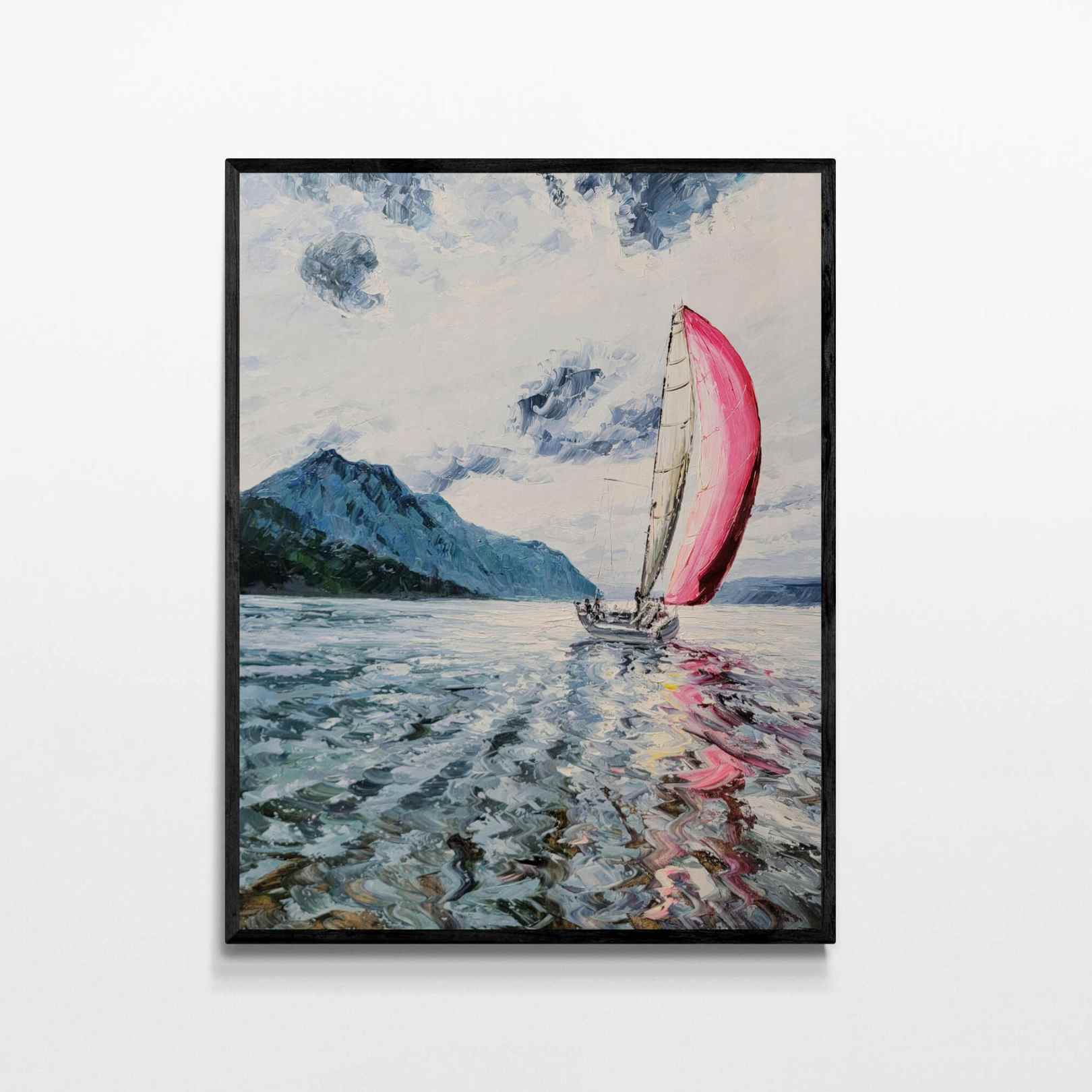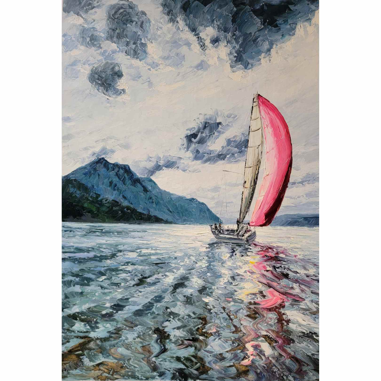 Tauchen Sie mit Wind Painting in die Ruhe des Meeres ein. Dieses wunderschöne Kunstwerk zeigt ein segelndes Segelschiff, perfekt für alle, die eine nautische und entspannende Dekoration suchen. Dieses mit präzisen Details und lebendigen Farben gefertigte Gemälde ist eine atemberaubende Ergänzung für jedes Zuhause oder jeden Arbeitsplatz.