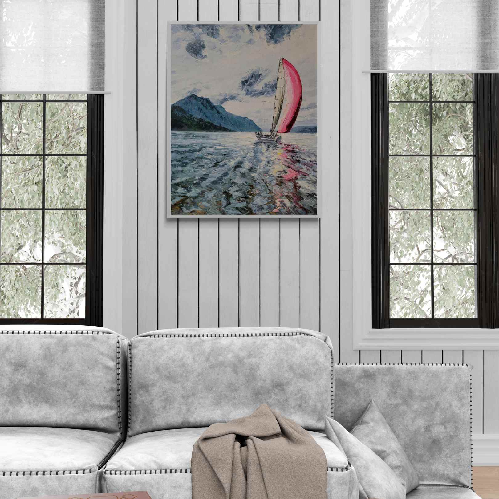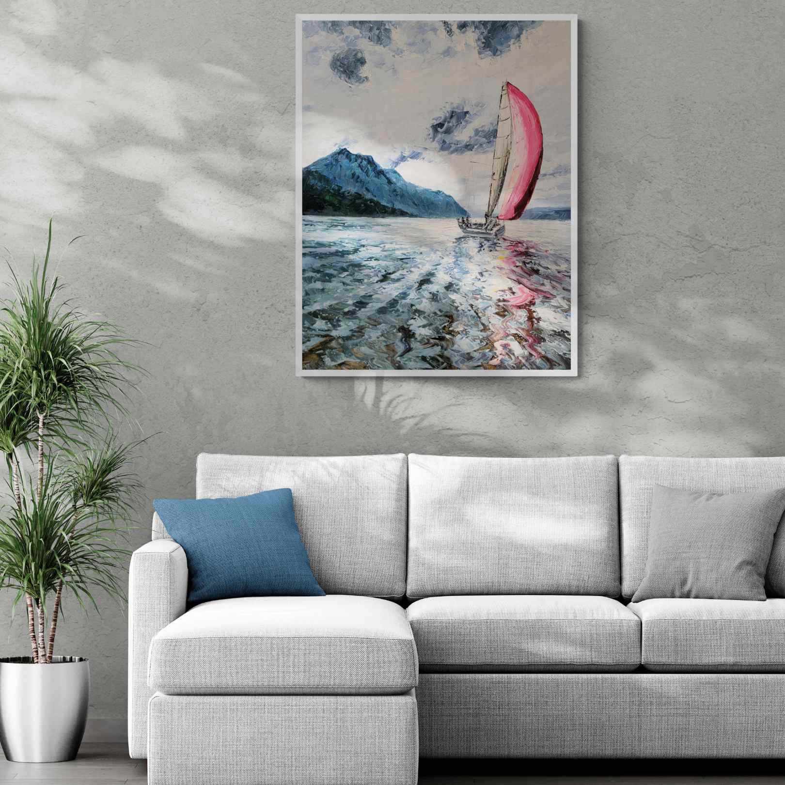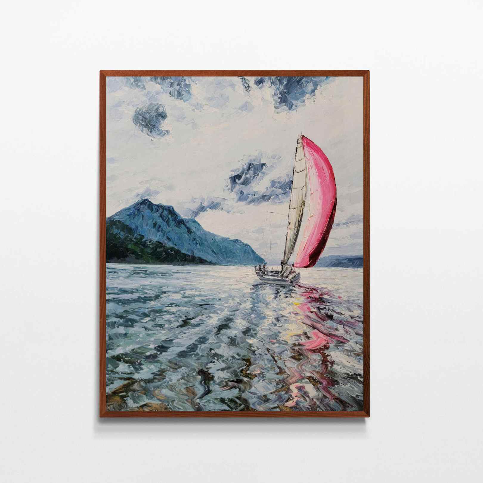 Tauchen Sie mit Wind Painting in die Ruhe des Meeres ein. Dieses wunderschöne Kunstwerk zeigt ein segelndes Segelschiff, perfekt für alle, die eine nautische und entspannende Dekoration suchen. Dieses mit präzisen Details und lebendigen Farben gefertigte Gemälde ist eine atemberaubende Ergänzung für jedes Zuhause oder jeden Arbeitsplatz.