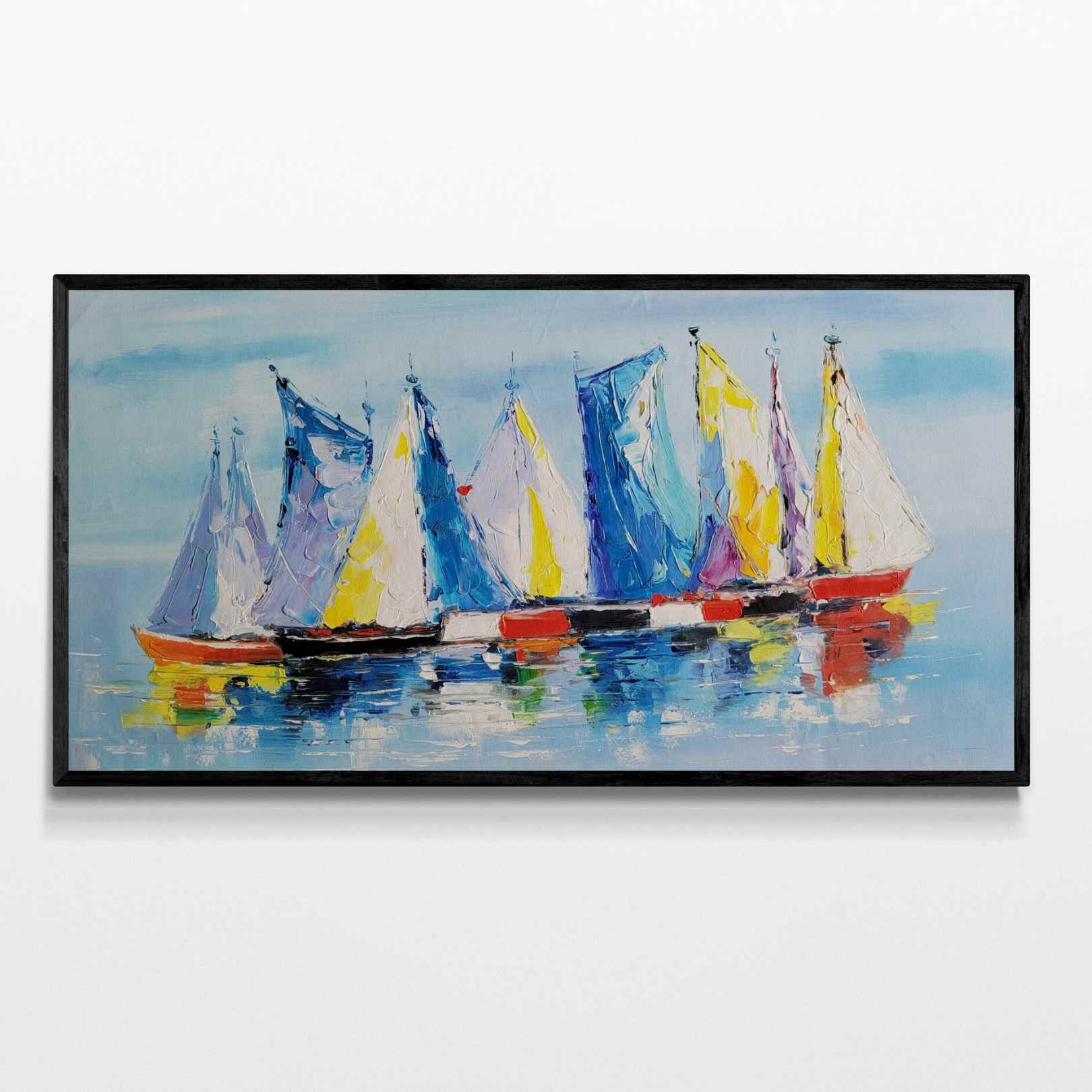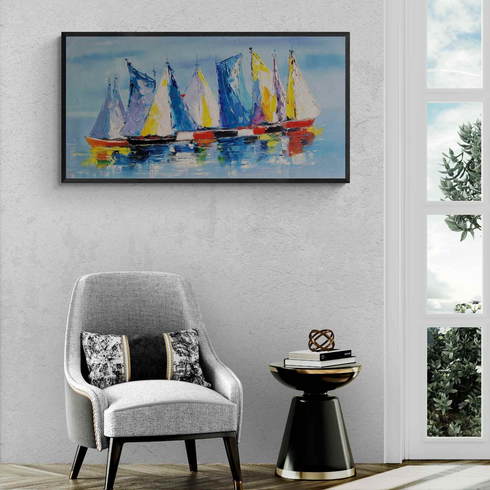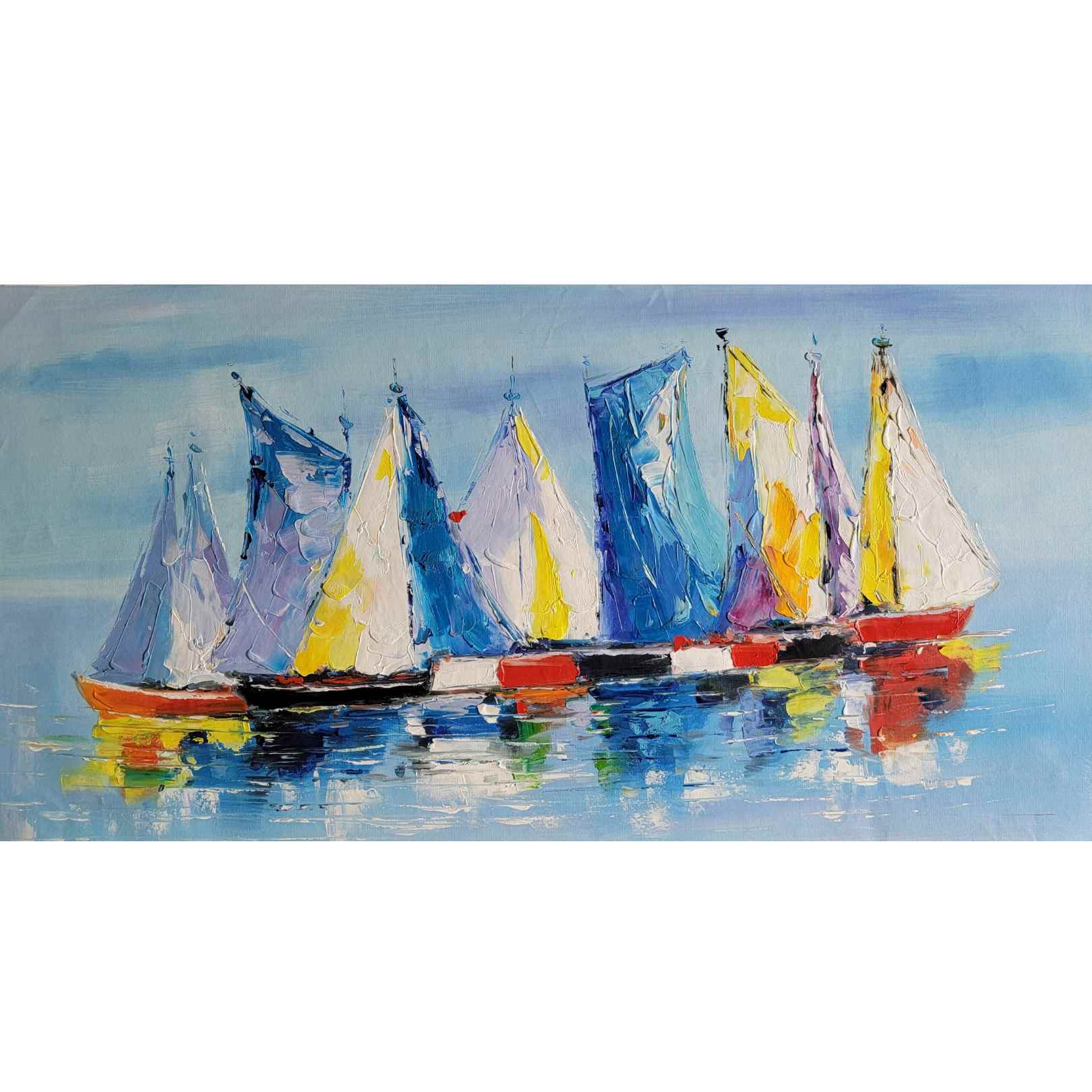 Genießen Sie dieses von Segelschiffen inspirierte Ölgemälde von Martín mit lebendigen Farben. Handgefertigt auf hochwertiger Leinwand ist diese einzigartige Kreation eine tolle Ergänzung für jedes Zuhause.