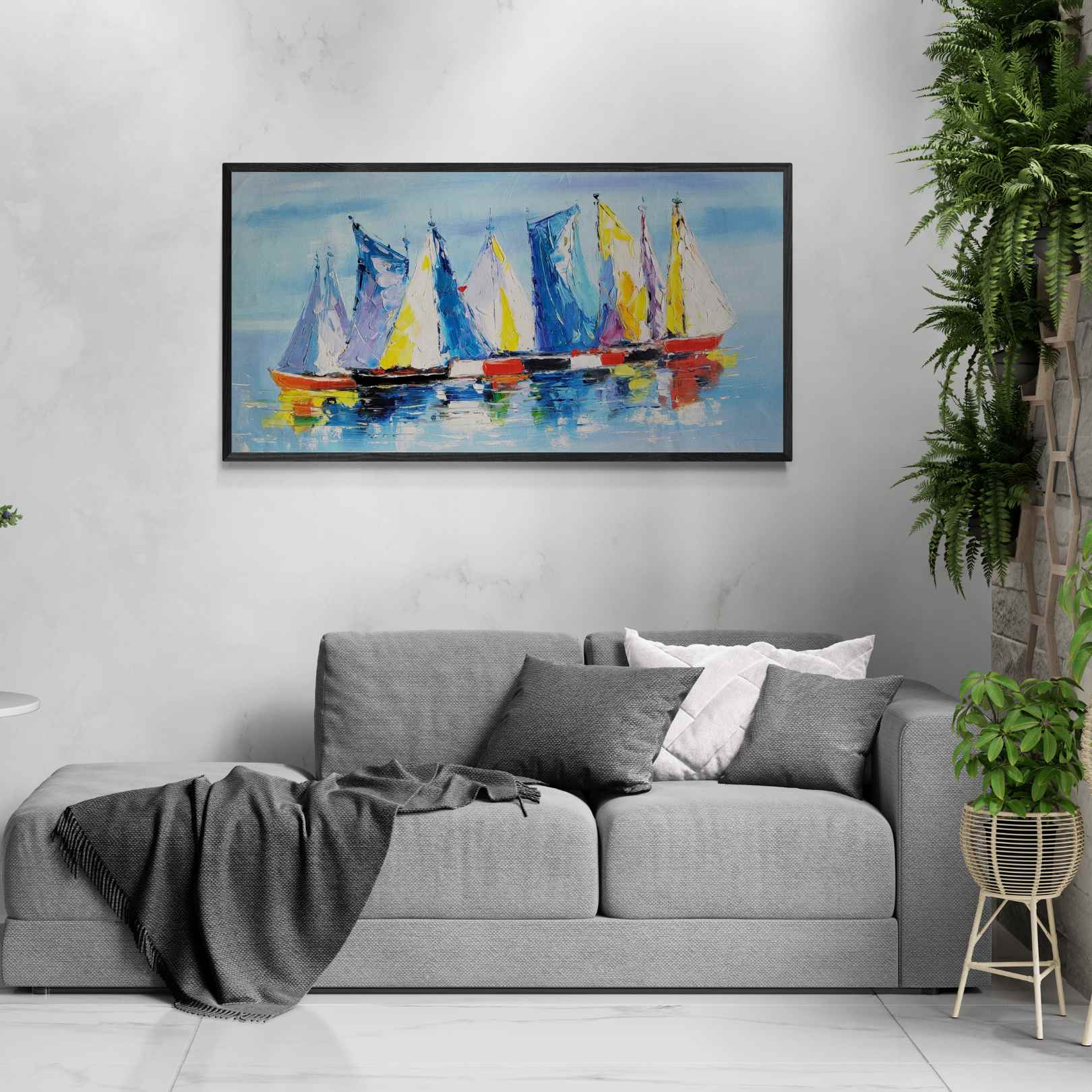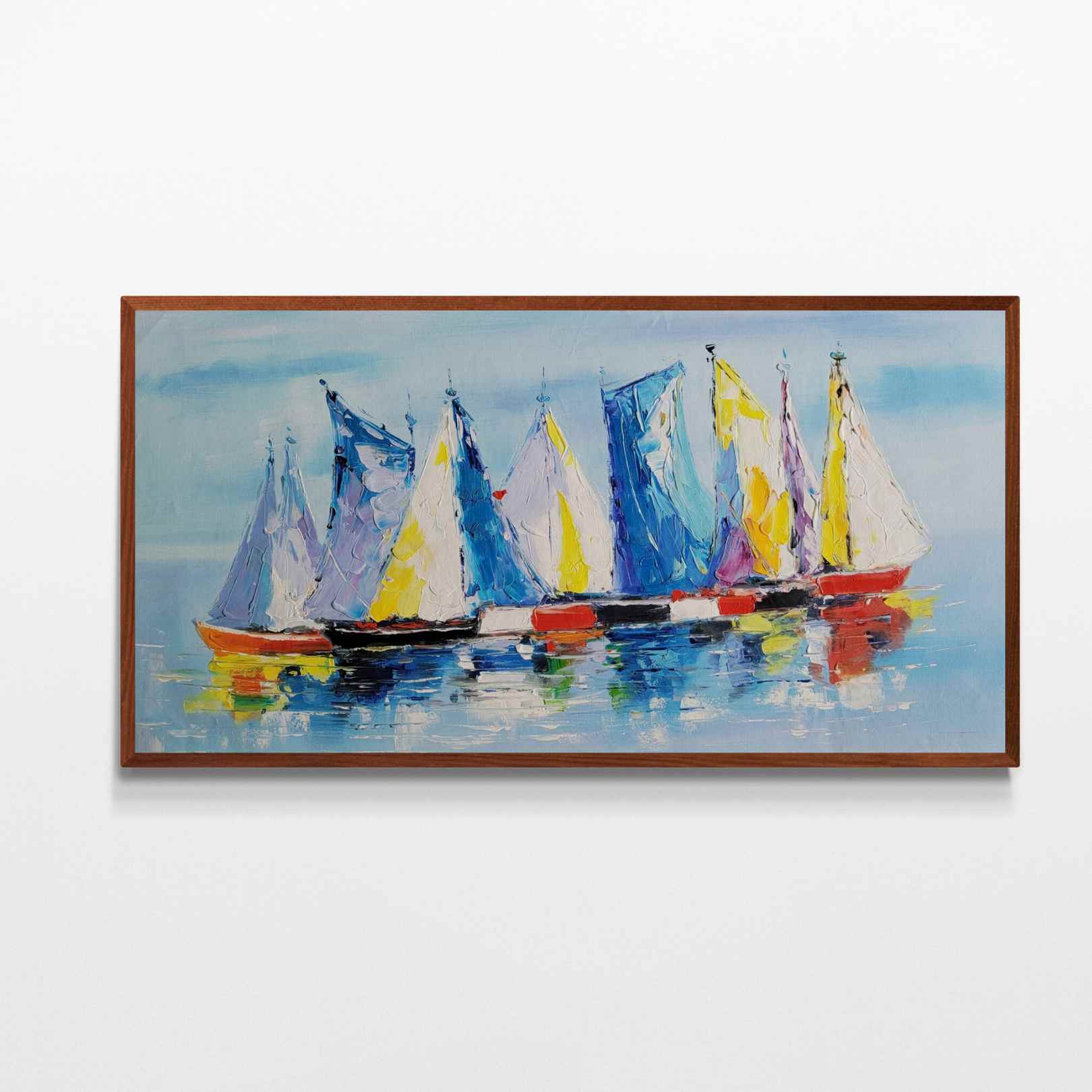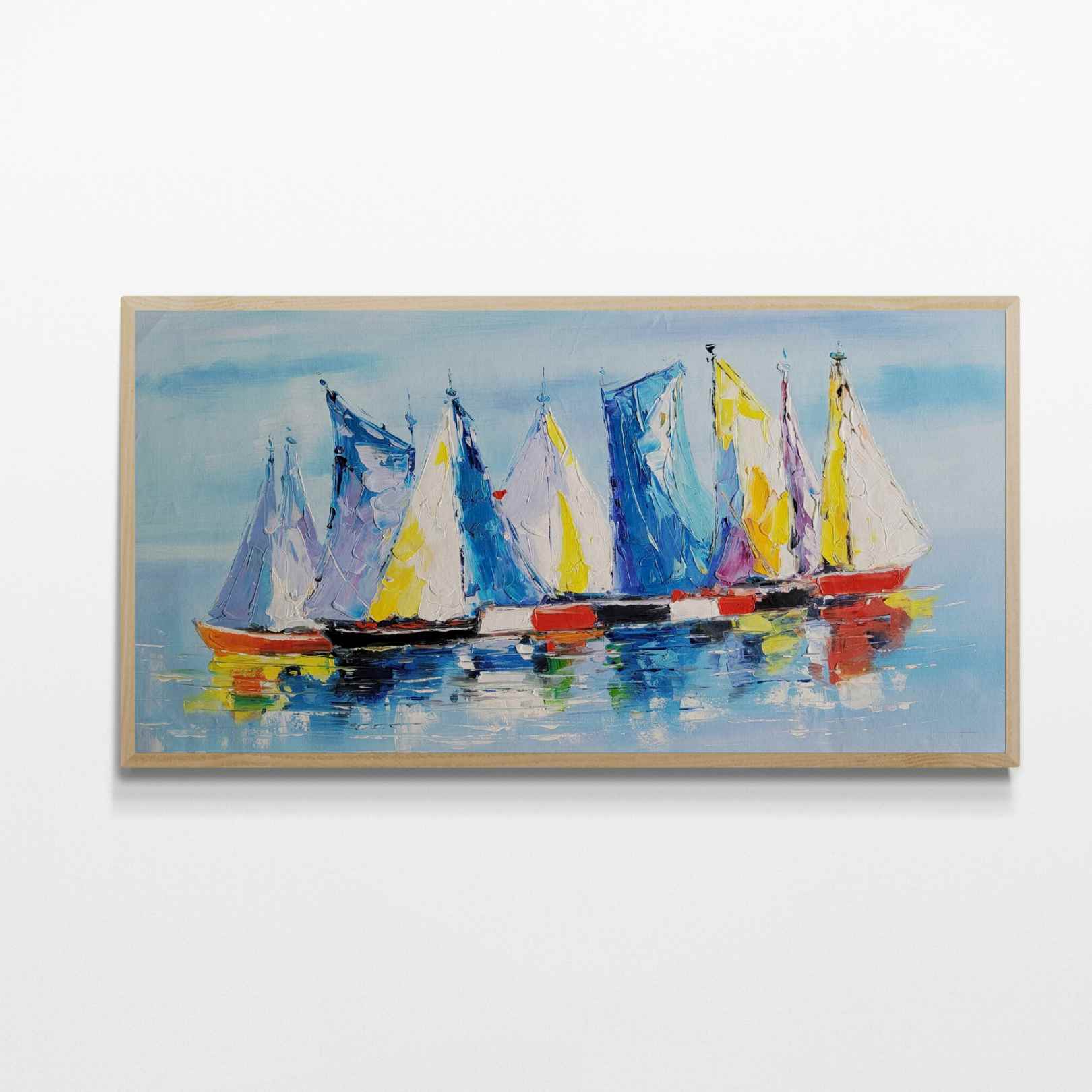Genießen Sie dieses von Segelschiffen inspirierte Ölgemälde von Martín mit lebendigen Farben. Handgefertigt auf hochwertiger Leinwand ist diese einzigartige Kreation eine tolle Ergänzung für jedes Zuhause.