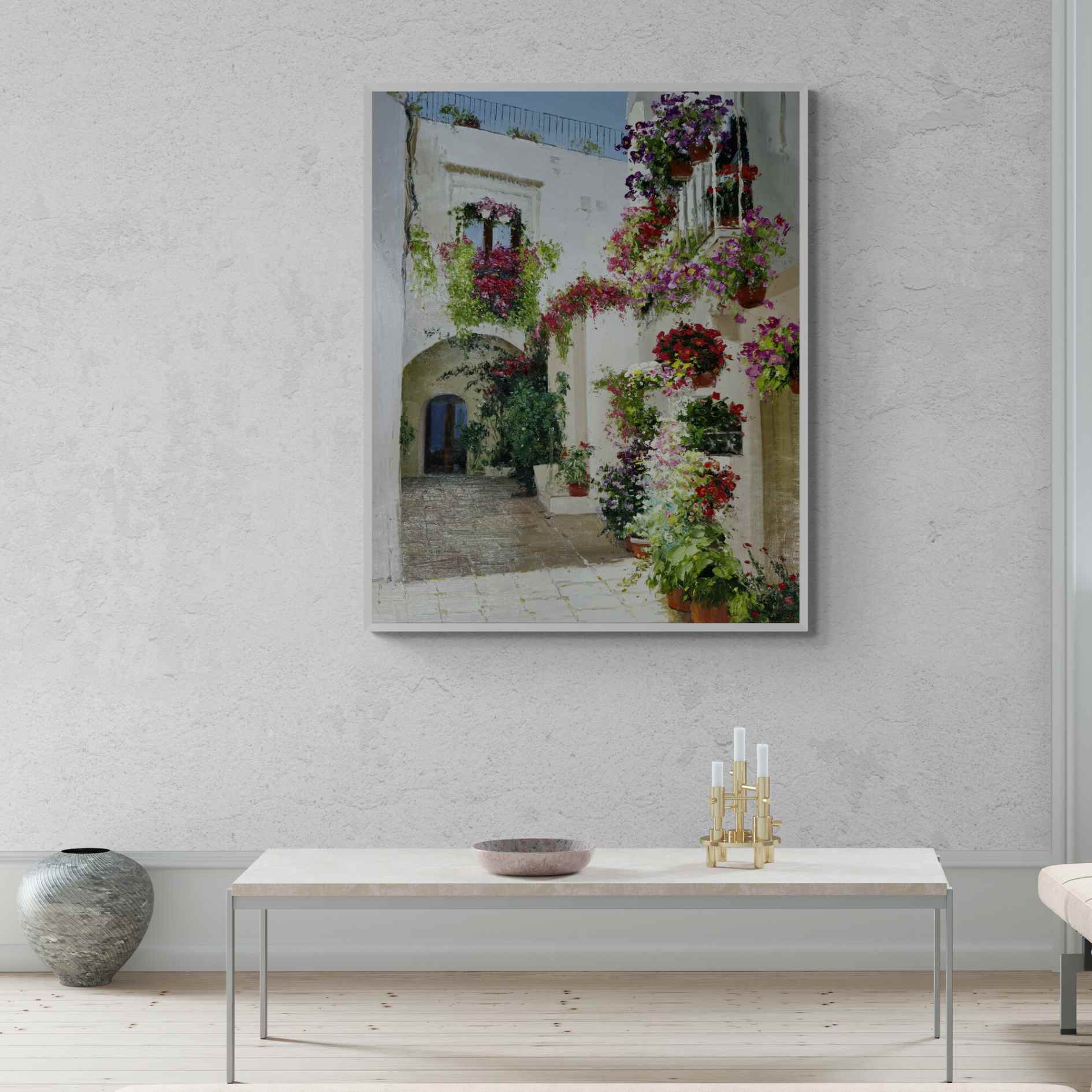 Erkunden Sie die wunderschönen Straßen Andalusiens mit diesem originalen, handgefertigten Ölgemälde. Mit jedem Pinselstrich fängt dieses Kunstwerk die Essenz der andalusischen Kultur ein und verleiht jedem Raum einen Hauch von Charme. Machen Sie Ihr Zuhause mit andalusischer Straßenmalerei zu einem gemütlichen und stilvollen Ort.