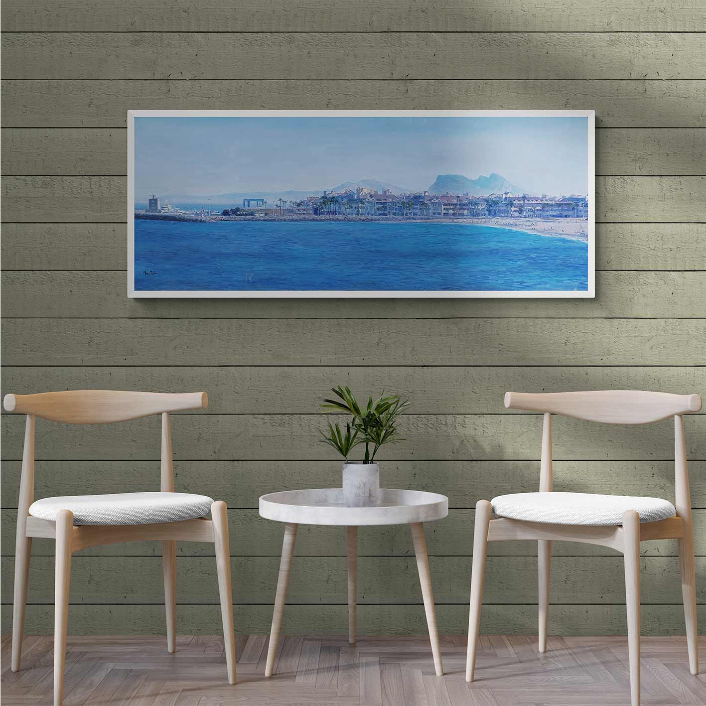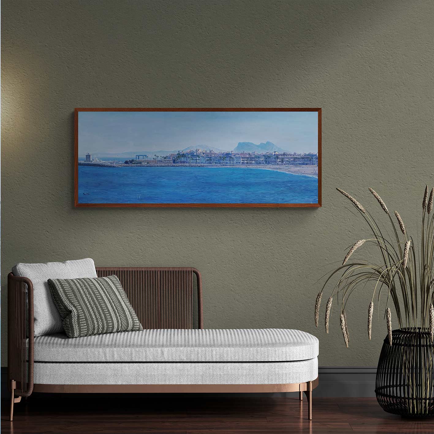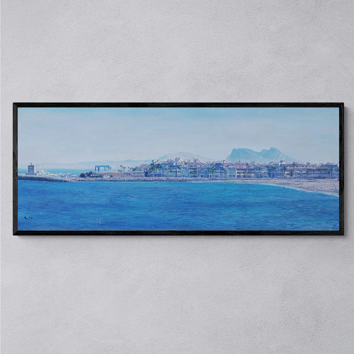 120Pintura el Peñón En Sotogrande, ein Original-Ölgemälde des Künstlers Martin de la Bahía aus der andalusischen Küstenstadt Sotogrande, ist ein großartiges Beispiel spanischer Kunst. Dieses einzigartige Gemälde spiegelt die Stile und Techniken der Küstenregion wider und ist somit eine interessante und besondere Ergänzung für jedes Zuhause oder jede Sammlung.
