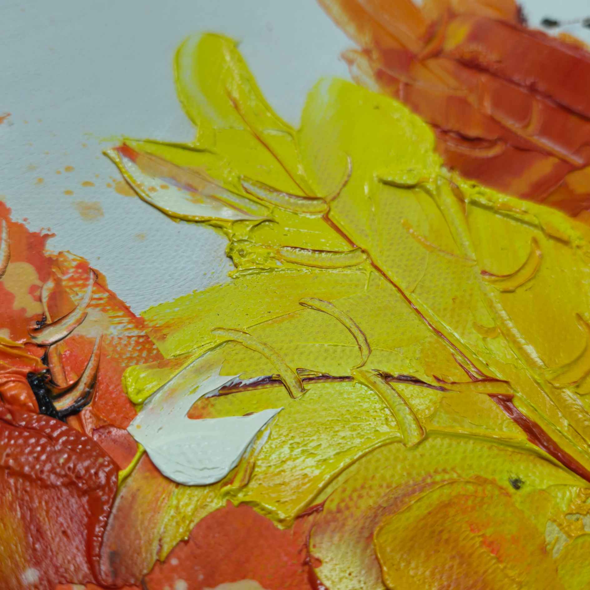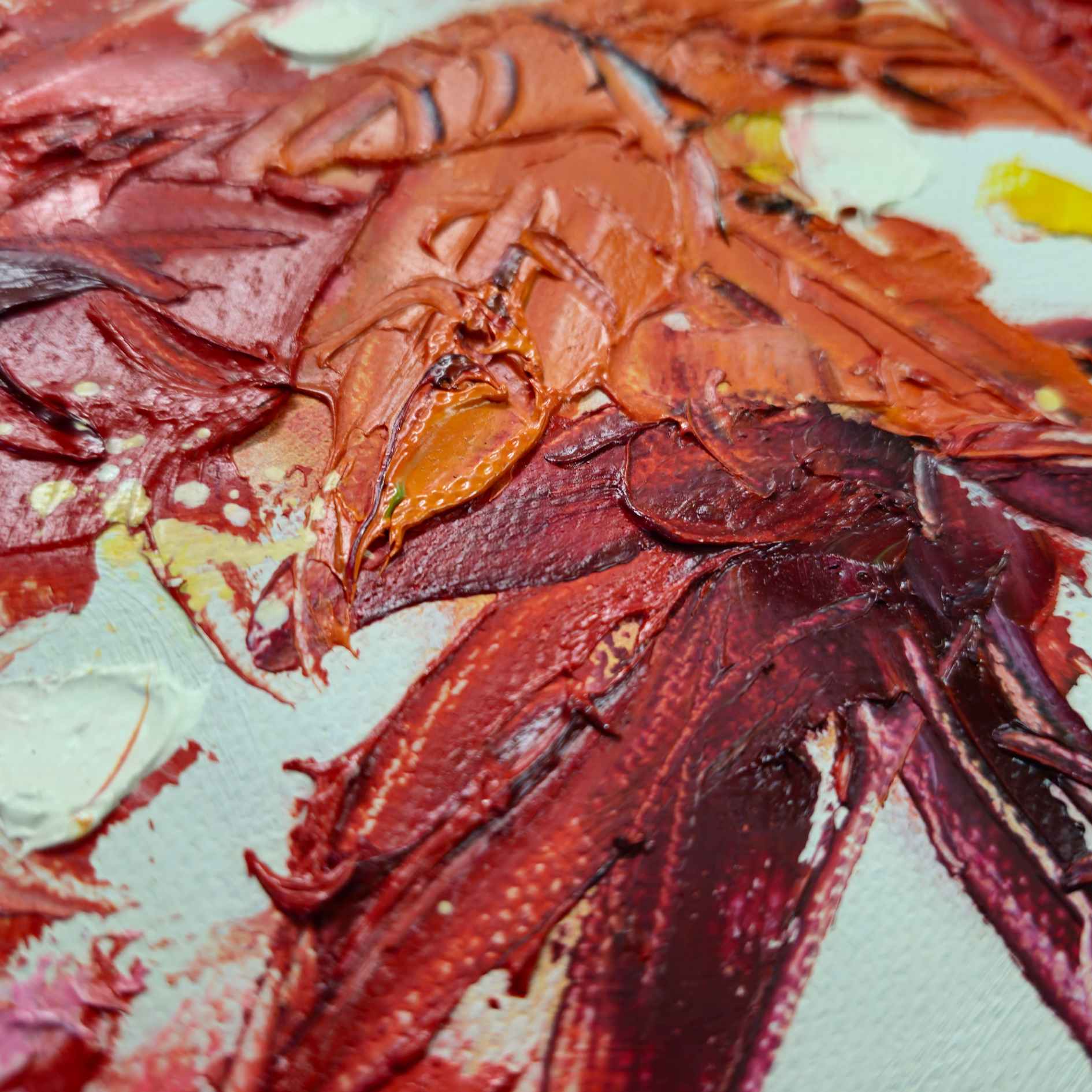 - Spürbare und sichtbare Textur durch die aufgetragenen Farbschichten.