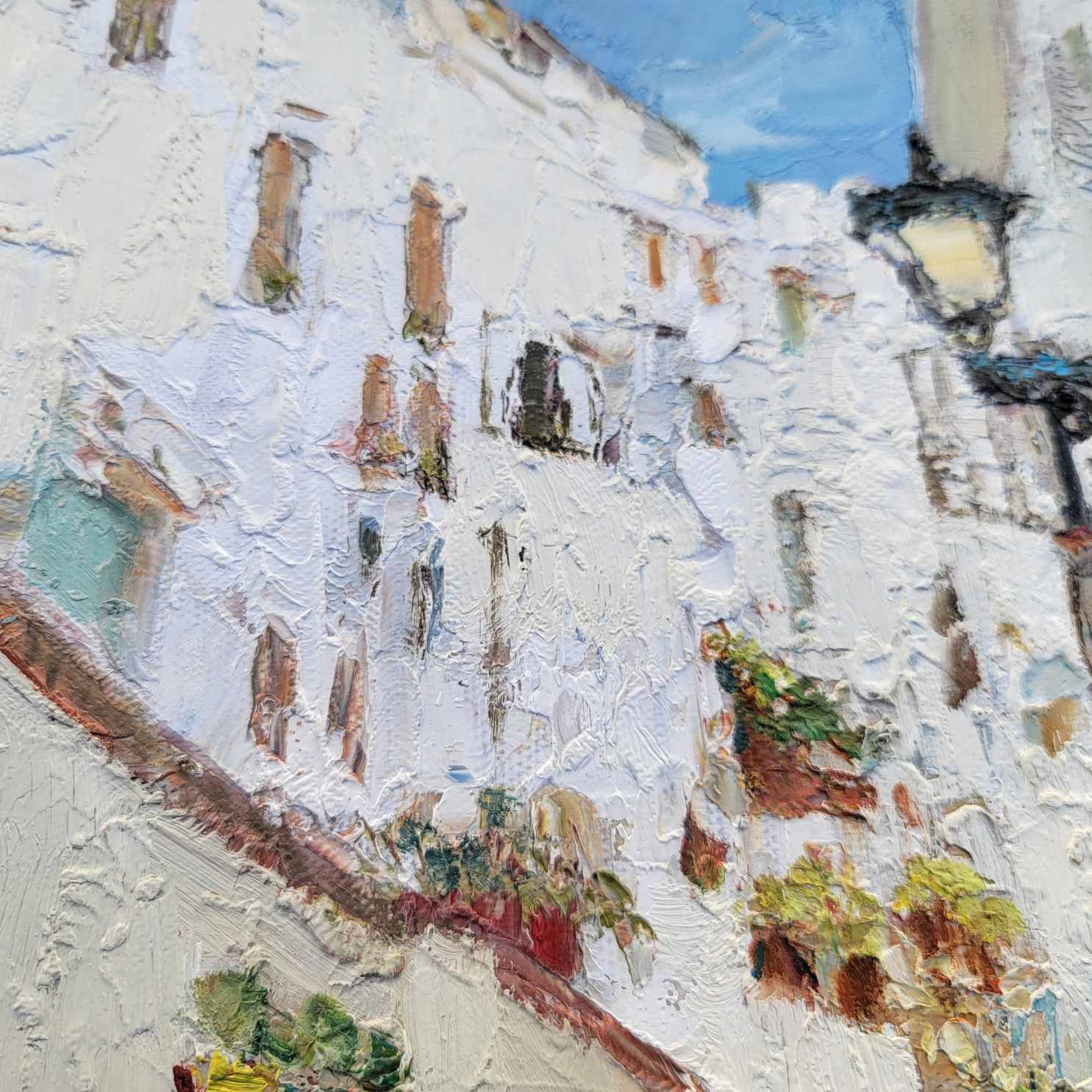 Dieses Original-Ölgemälde von Martin stellt eine einzigartige Vision der Schönheit durch eine typische Straße in einem andalusischen Dorf dar. Das Ergebnis ist ein einzigartiges Kunstwerk, gestaltet mit Meisterschaft und Realismus.