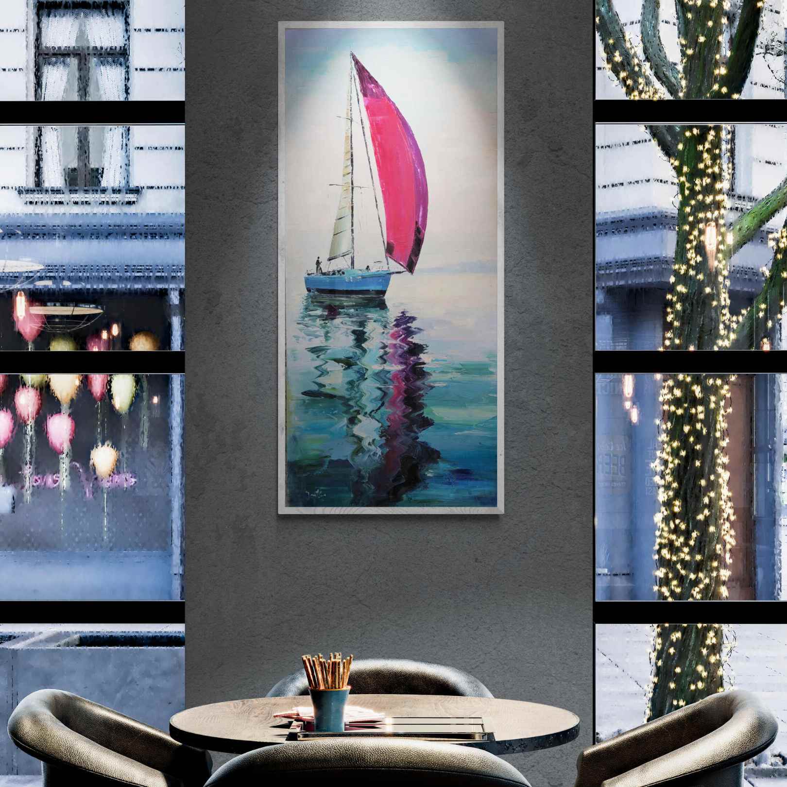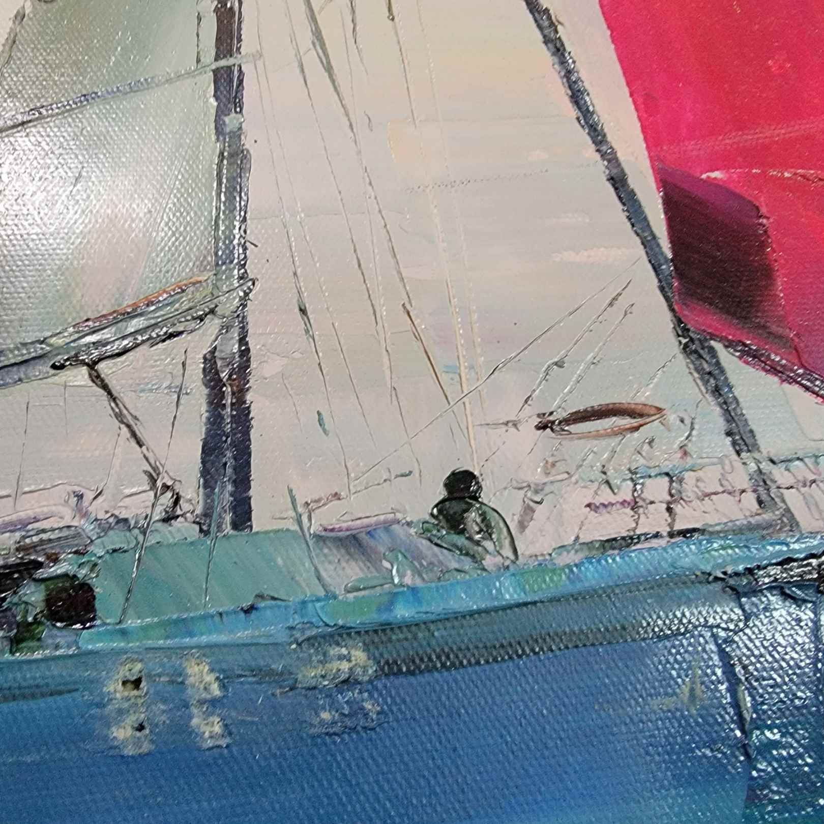 Inspiriert von der Schönheit der Ozeane ist dieses handgefertigte nautische Ölgemälde die perfekte Ergänzung für jedes Wohnzimmer. Dieses einzigartige Kunstwerk fängt die Freude am Bootsfahren mit der Nostalgie vergangener Tage ein. Der Kauf dieses Gemäldes ist eine stilvolle Investition für die Dekoration Ihres Zuhauses.