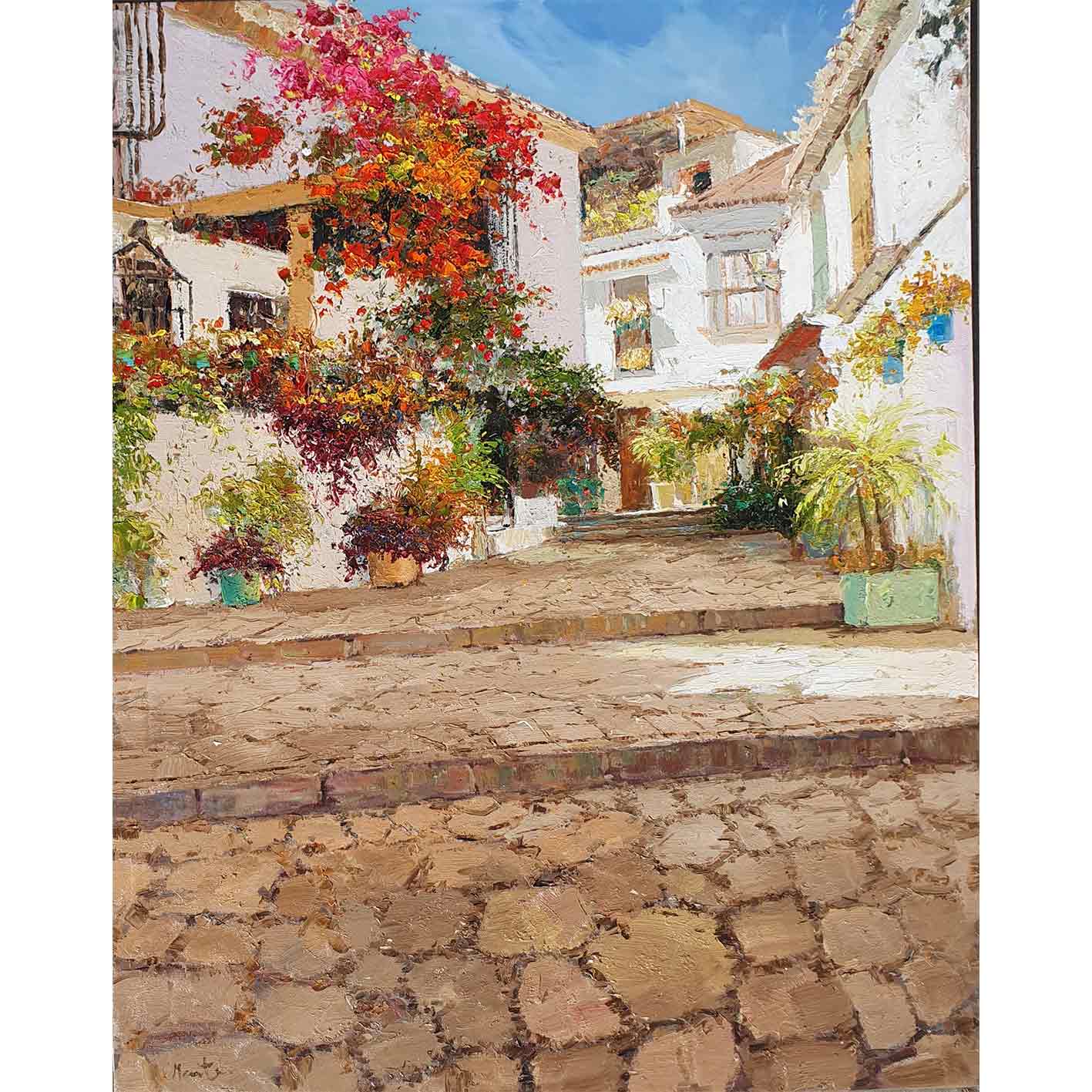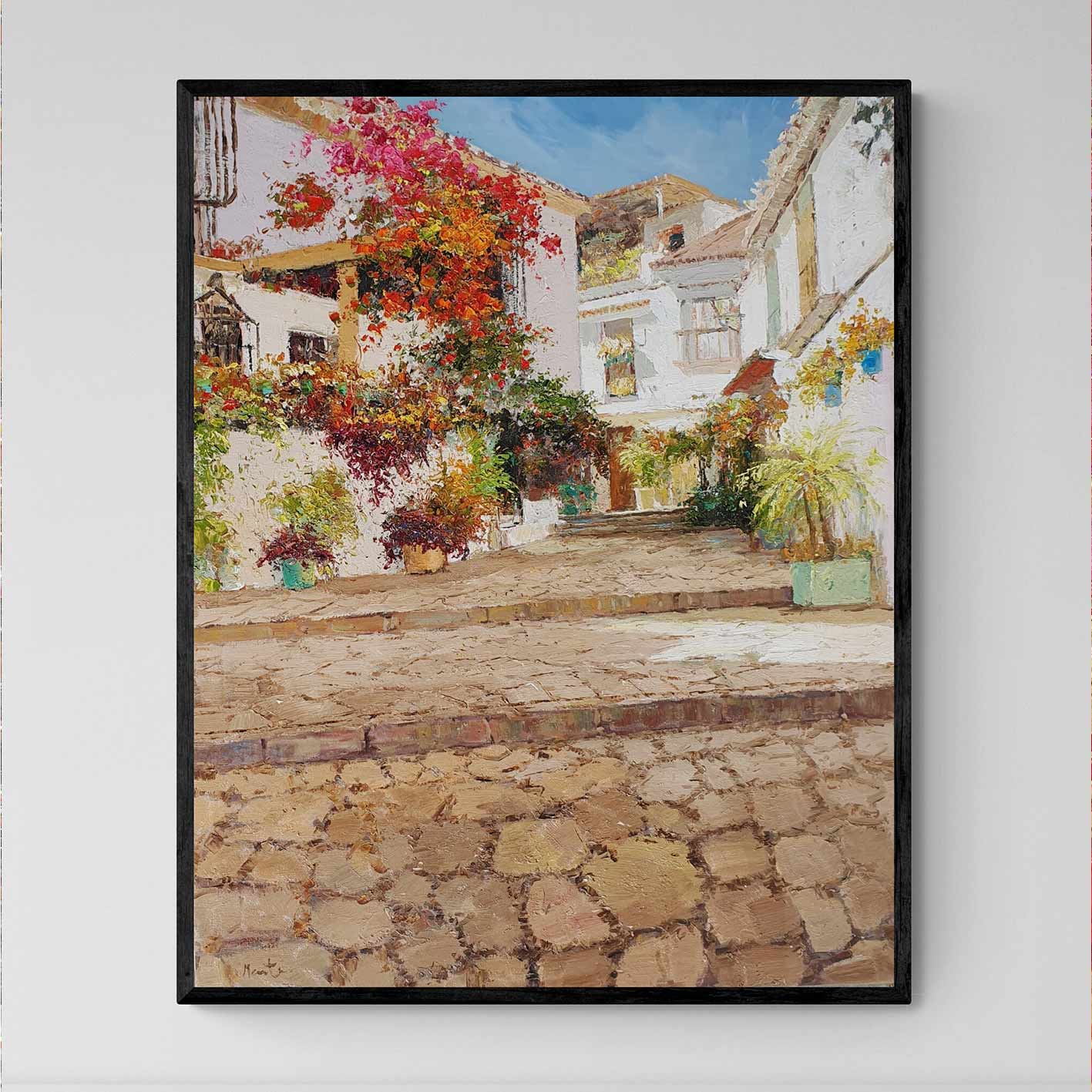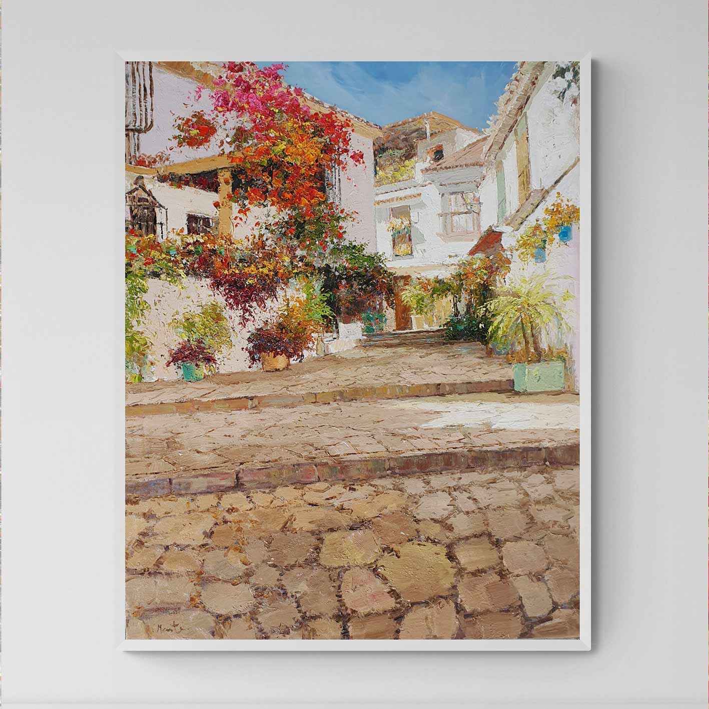 Genießen Sie Martins Ölgemälde „Die letzten Schritte“. Dieses Werk entführt Sie dank der lebendigen Details und satten Farben in die Straßen Andalusiens. Schätzen Sie die Schönheit dieses einzigartigen Gemäldes mit der Wärme und dem Gefühl der spanischen Kultur.