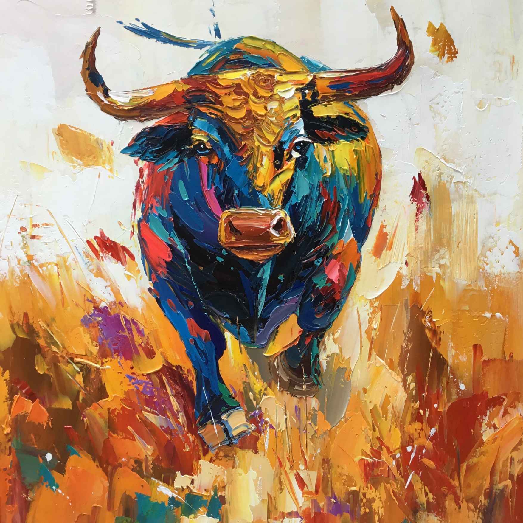 Entdecken Sie Kraft und Mut in Ihrem Zuhause mit unserem handgemalten Stiergemälde in Öl. Lassen Sie sich von seinem Geist einhüllen und zeigen Sie Ihren Stil mit diesem exklusiven und eleganten Stück. Verleihen Sie Ihrem Zuhause eine symbolische und kulturelle Note. Lassen Sie Ihr Zuhause mit dem tapferen Stier Ihre Persönlichkeit widerspiegeln!