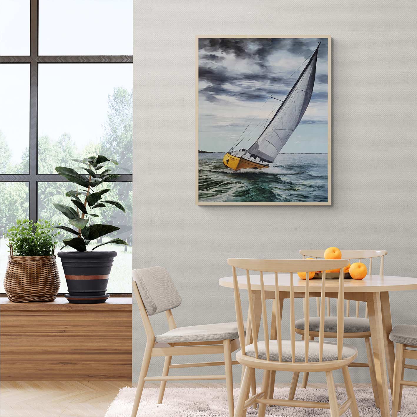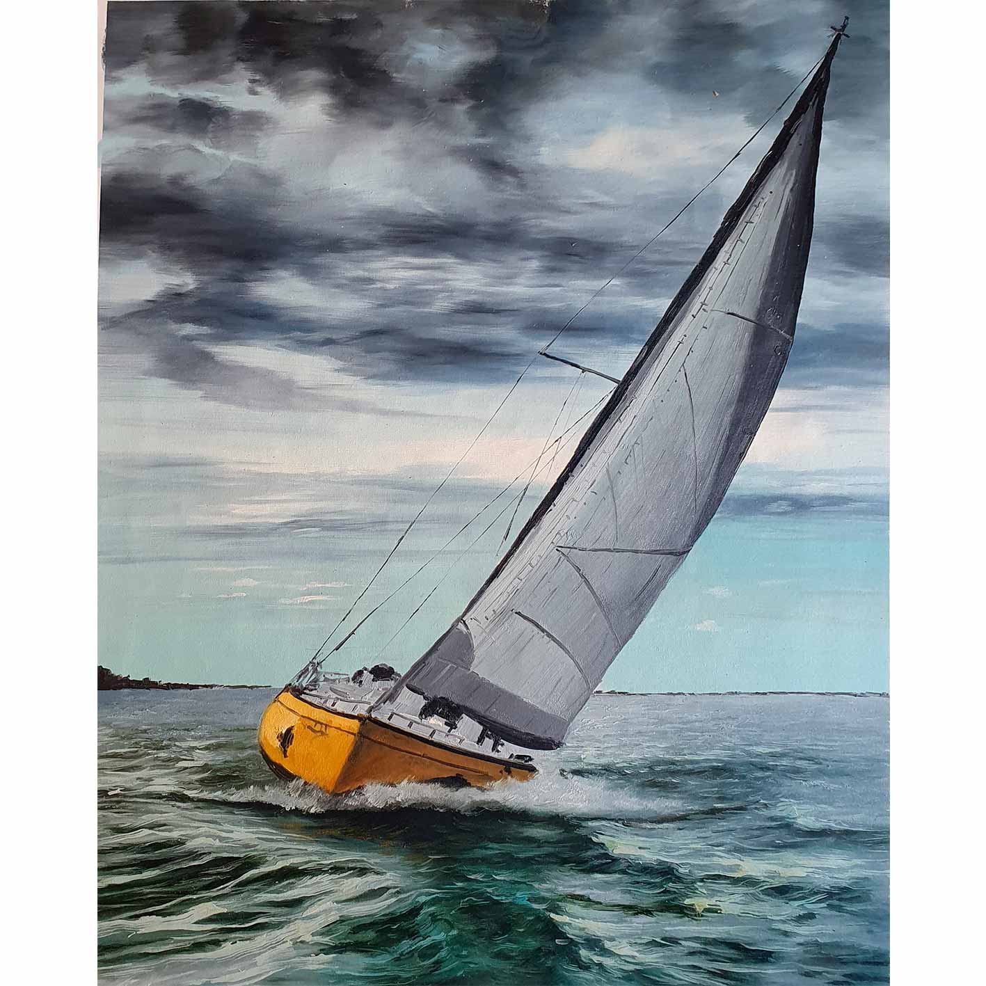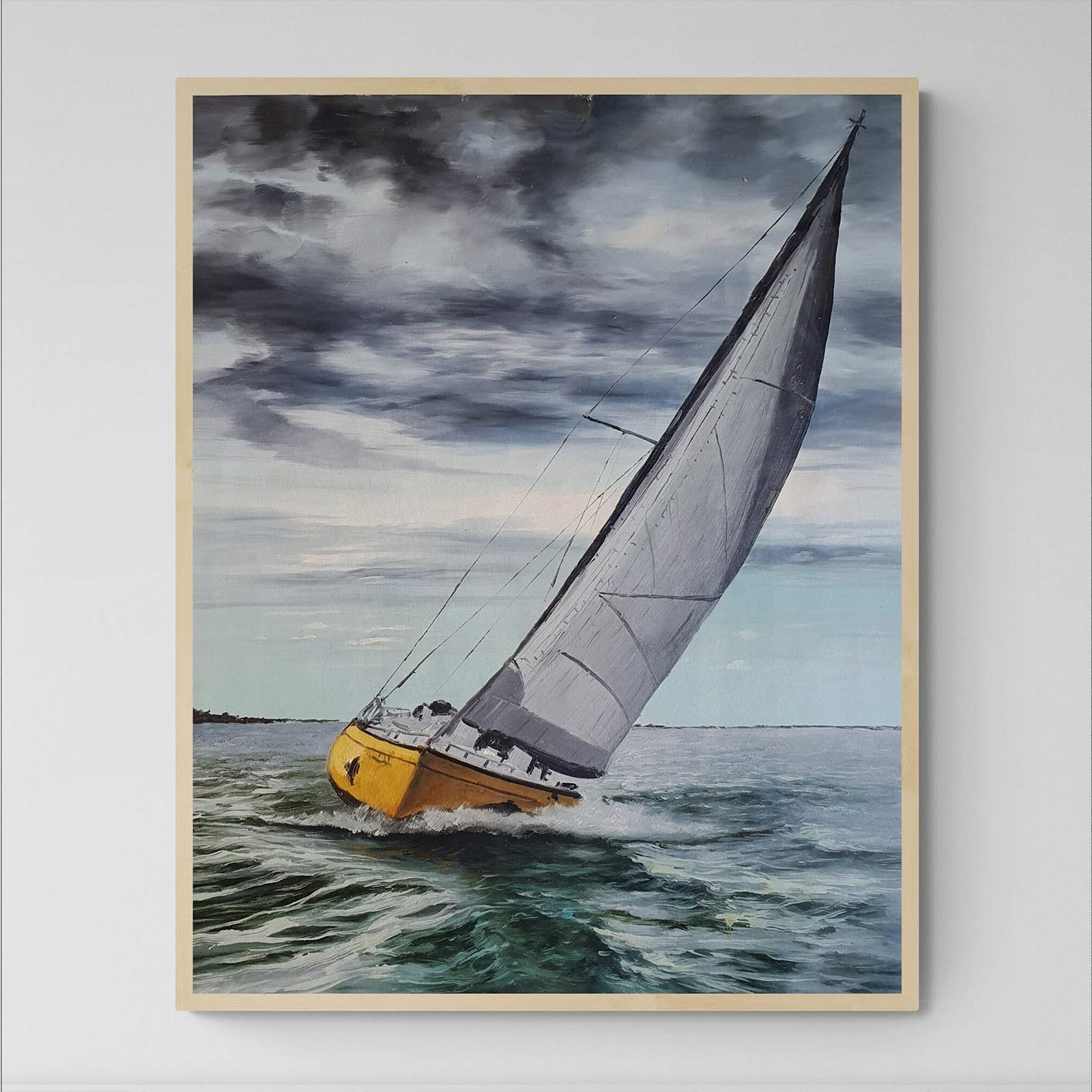„Gemälde „Ich habe ein gelbes Boot““ ist ein Original-Ölgemälde des Künstlers Martin. Dieses einzigartige Gemälde hebt eine leuchtend gelbe Farbe auf einem Segelboot hervor. Dieses Gemälde ist eine schöne Möglichkeit, jeden Raum zu beleben.