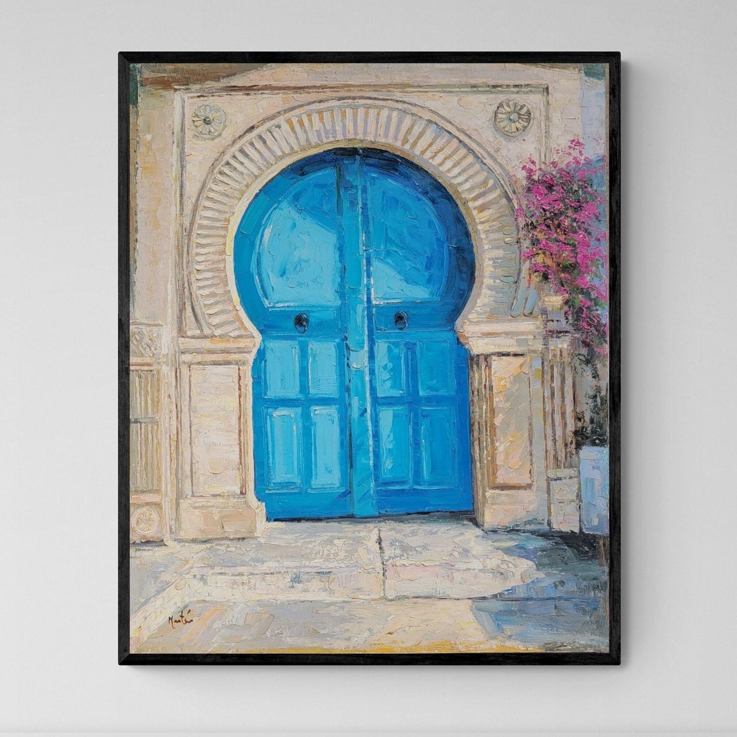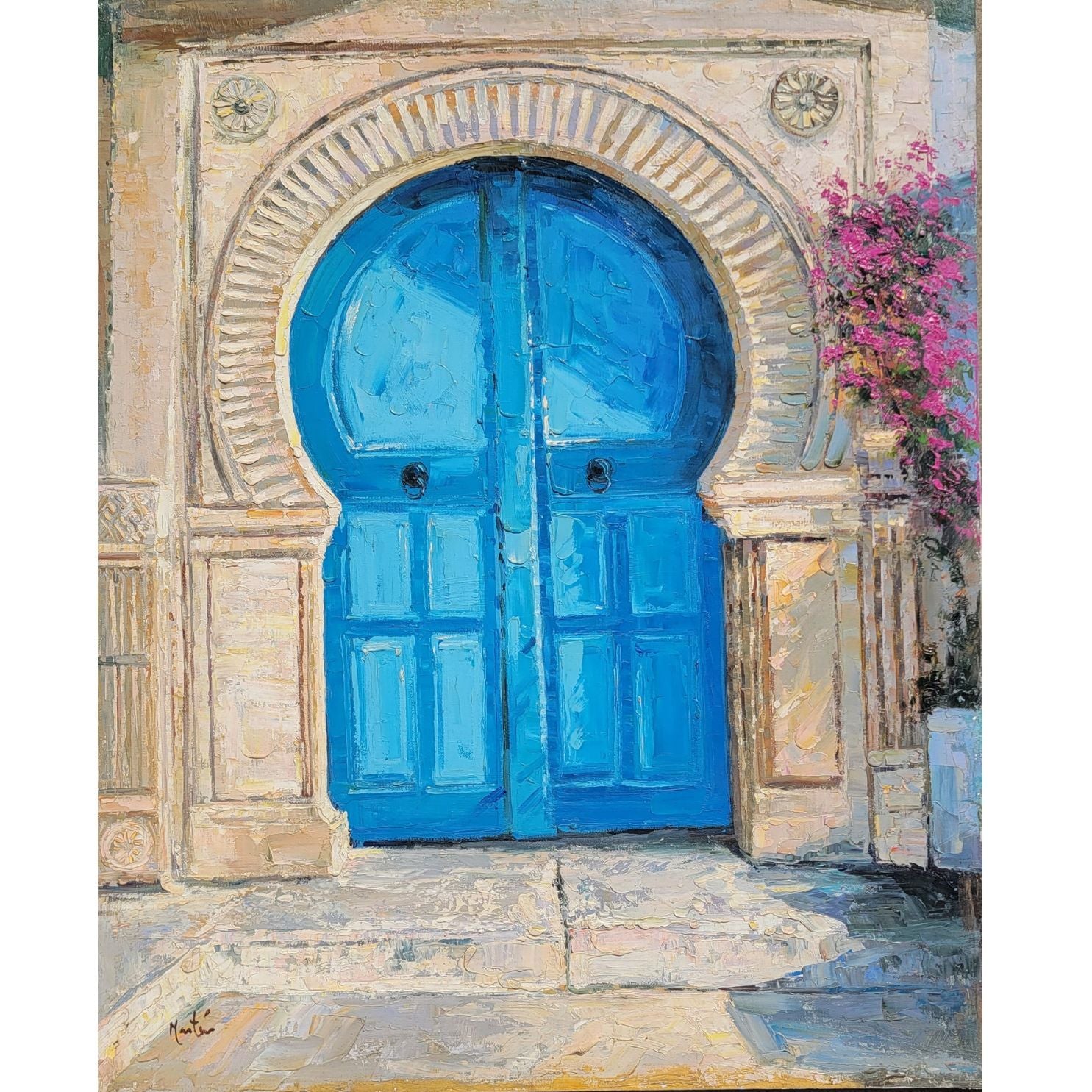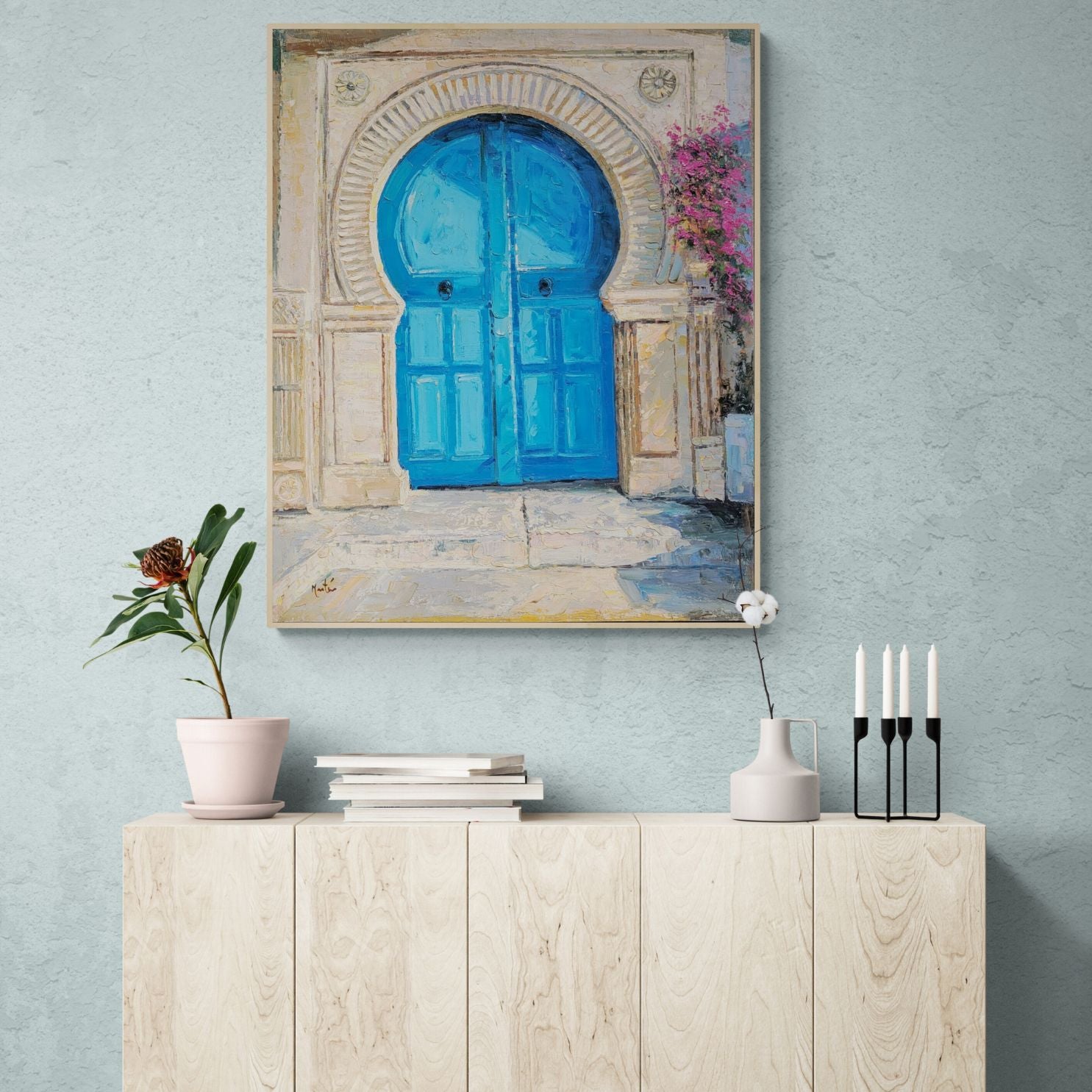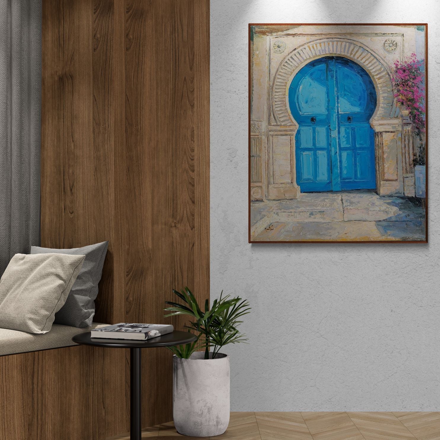 Diese Another Architecture-Tür ist ein Ölgemälde von Martín. Das originale blaue Xahuen-Gemälde ist einzigartig und sorgt dafür, dass Ihr Zuhause durch seine Schönheit und Modernität hervorsticht. Diese Tür verleiht jedem Raum einen Hauch von Eleganz.